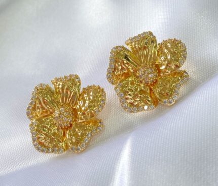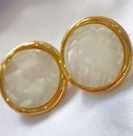 Brinco pressão clássico com pérola central e brilho sofisticado
