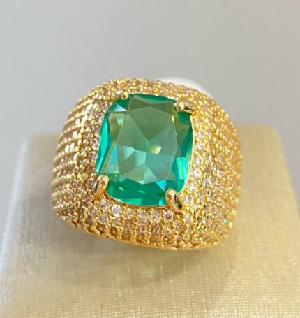 Anel com pedra verde e cravejado em zircônias: a combinação perfeita de luxo e elegância.