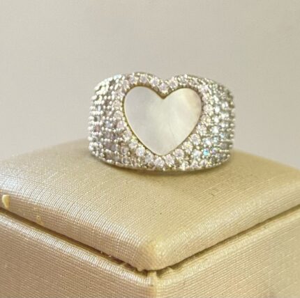 Anel com detalhe de coração vazado e cravação em zircônia.