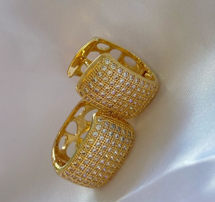 O toque de luxo que seu look merece; Argola totalmente cravejada.
