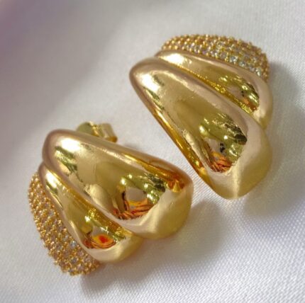 Brinco dourado com textura e volume