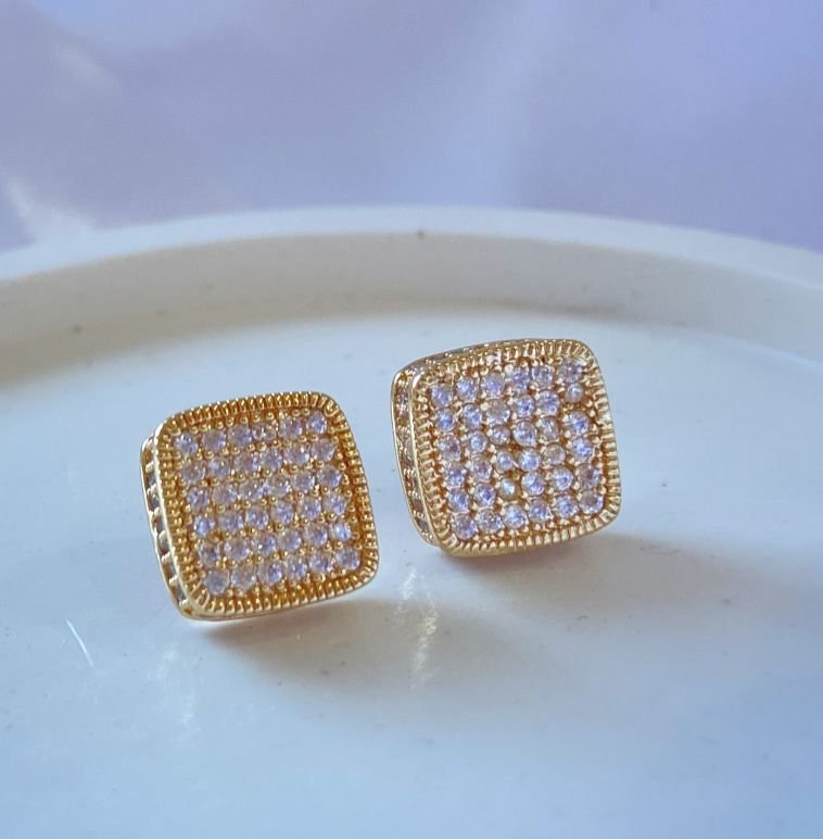Brinco quadrado cravejado