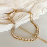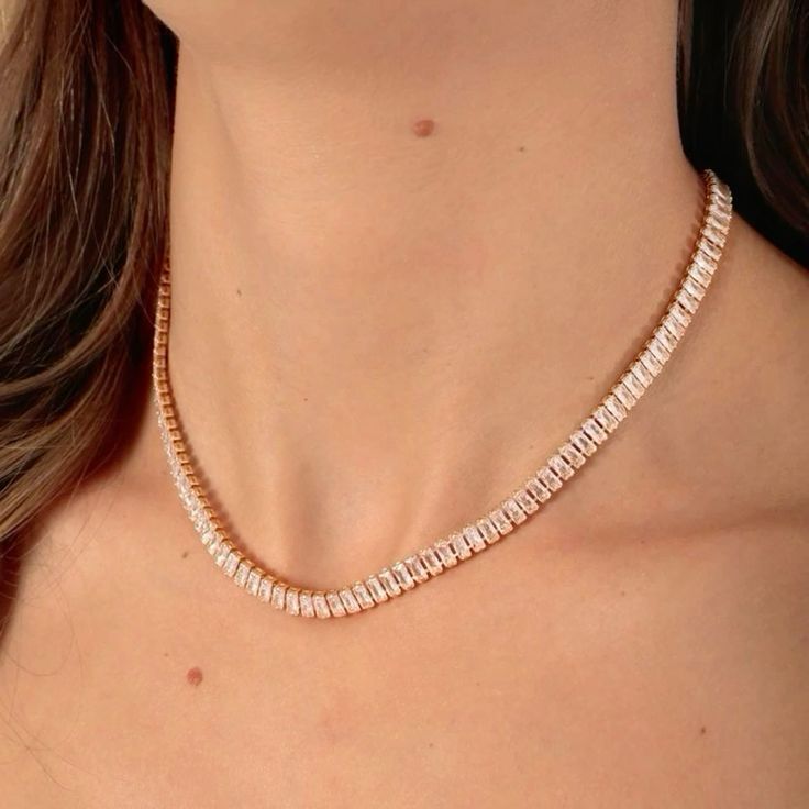 Colar Riviera com zircônias retangulares, aquele brilho sofisticado que transforma qualquer look. Perfeito para quem ama estar sempre impecável.
